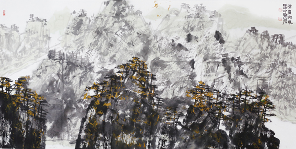2014年6月在湖北中盛拍賣公司《錦繡河山映丹霞》拍出30萬(wàn)元;