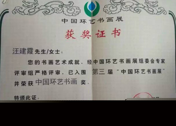 2016年汪劍俠老師在第三屆中國環(huán)藝書畫展頒獎盛典的現(xiàn)場