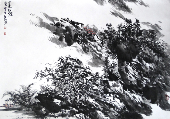更為重要的是,在用墨與設(shè)色之間還相得益彰。作品不僅顯得空靈、超逸,還不乏生動(dòng)的氣韻與景致。