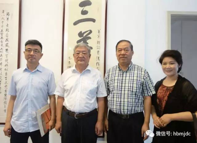▲ 2015年秋天,韓忠學(xué)老省長親臨名家典藏藝術(shù)館指導(dǎo)工作,名家典藏出品人郭建向顧問匯報(bào)公司近年來主辦的文化藝術(shù)活動(dòng)的情況。公司相關(guān)負(fù)責(zé)同志陪同