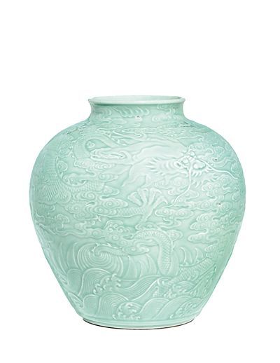清乾隆“御制粉青釉浮雕龍紋罐”