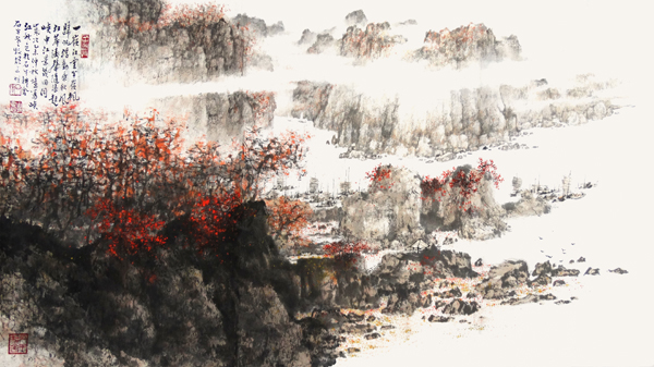 胡念祖 山水 一嶺江云半嶺楓 136×68cm