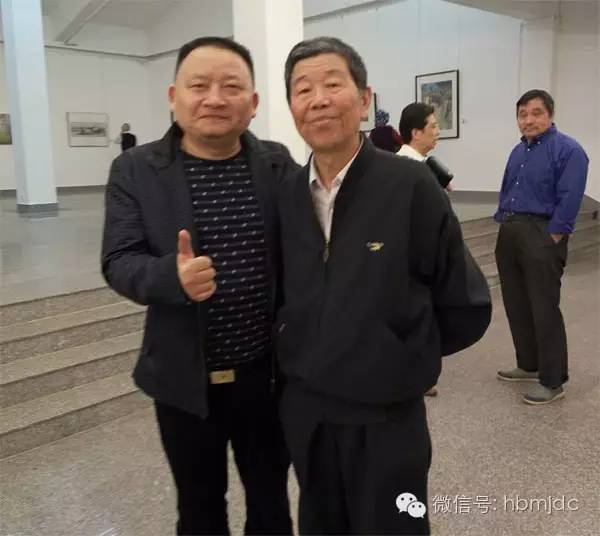 (湖北省文化廳副廳長嚴榮利和省中國畫研究院院長孔奇在欣賞畫展)