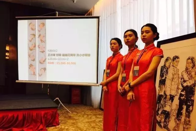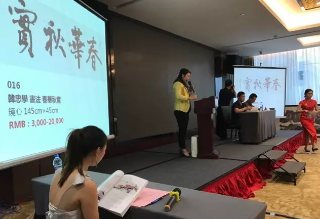 ▲ 2016湖北中盛“夏淺勝春”藝術(shù)品拍賣會現(xiàn)場,競買者爭相舉牌