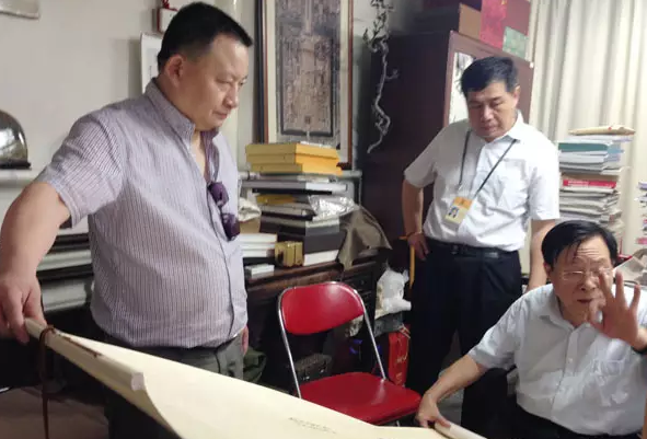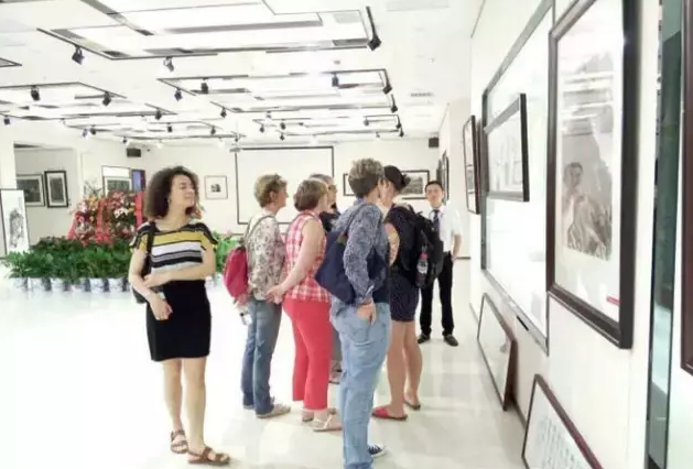 ▲ 2016年7月1日,法國友人正在參觀由名家典藏藝術(shù)機構(gòu)攜手徐東古玩城舉辦的“2016中國(武漢)徐東古玩城名家書畫精品收藏鑒賞交流展”