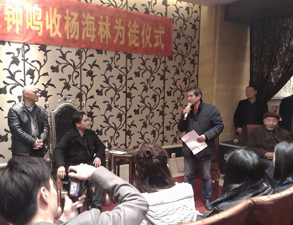 今年12月鐘鳴收楊海林為學藝門生,湖北中國畫研究院院長孔奇到場祝賀.