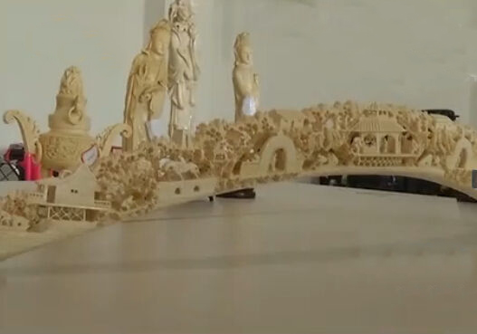 青島流亭機場海關旅檢一科副科長 孫學雷說,“最后把他叫過來,在通關做X光機檢查的時候,發(fā)現(xiàn)行李圖像存在疑點。隨后我們對其進行了開箱細致查驗,首先發(fā)現(xiàn)了一根一米多長的象牙原牙,經(jīng)過仔細檢查,發(fā)現(xiàn)這根象牙紋理很符合真正的象牙,隨后在別的行李箱中陸續(xù)發(fā)現(xiàn)了象牙雕刻的觀音、仙女等,雕工非常精美。”