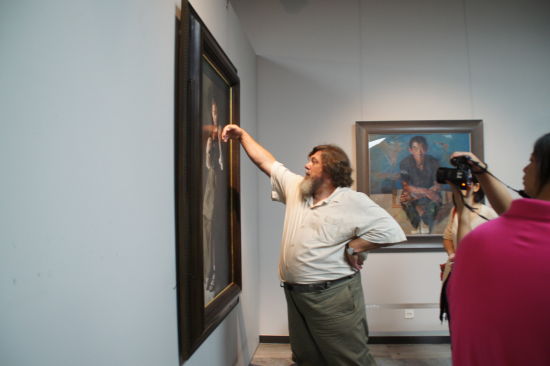 亞歷山大·貝斯特洛夫教授是俄羅斯當(dāng)代現(xiàn)實(shí)主義油畫(huà)的杰出代表,曾就讀于列賓美術(shù)學(xué)院,是著名油畫(huà)大師梅爾尼柯夫教授的高足。此次隨行的7名年輕藝術(shù)家均為他的助手或?qū)W生,也是俄羅斯現(xiàn)實(shí)主義油畫(huà)新生代的中堅(jiān)力量。在觀看了本次“油畫(huà)季”收錄的中國(guó)國(guó)家畫(huà)院油畫(huà)院研究員的160余幅作品之后,貝斯特洛夫教授連聲稱(chēng)贊,“中國(guó)的油畫(huà)發(fā)展的太快了,總有一天會(huì)超過(guò)我們!”而在觀展過(guò)程中,他不時(shí)地對(duì)作品提出了中肯的意見(jiàn),得到了詹建俊院長(zhǎng)的積極回應(yīng)。