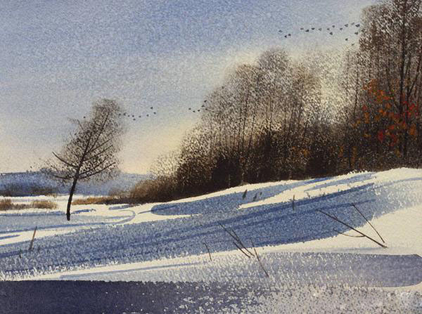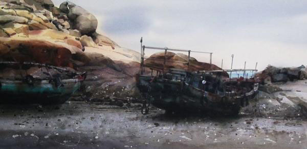 水彩畫顏色的透明性、重色彩技法、干濕技法的運用,使畫面顯得水乳交融,畫面中水的滲化作用、流動的性質(zhì)以及隨機變化的筆觸,帶著令人陶醉的特殊風(fēng)韻。與其他繪畫相比,水彩畫對藝術(shù)家的要求之高近乎苛刻,因為在水彩畫的創(chuàng)作過程中,不允許出一點差錯,出了錯便不可修改和彌補。水彩畫的魅力就在于一次完成。這也使得水彩畫贗品不像國畫那樣泛濫。