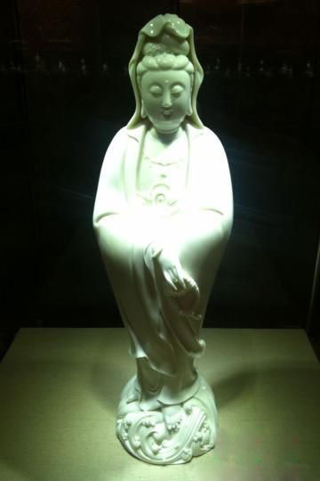 觀音是中國工藝美術界中深受歡迎的優(yōu)秀傳統(tǒng)題材。史料記載,宋代的德化窯就有瓷觀音制作。到了明代,不僅在燒制技藝上取得豐富的經(jīng)驗,而且在藝術上登上一個新的發(fā)展高峰,奠定了德化窯瓷觀音的藝術風格。以何朝宗為代表的瓷藝大師創(chuàng)作的瓷觀音,在國際上享有“東方藝術珍品”、“東方維納斯”等美譽。