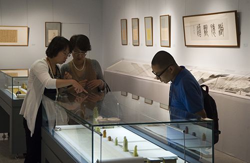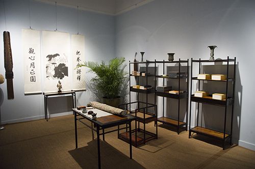 在作品欣賞區(qū)以外,展廳設置有中國傳統(tǒng)生活藝術的情景體驗區(qū),觀眾可徉徜于古意盎然的書齋、茶室空間,感受中國古代生活智慧,現(xiàn)實體驗“焚香煮茗、賞畫聽琴”的閑情雅趣。另有一批禪意書畫小品,片箋尺素,文摘詞抄,皆盡精妙,使觀眾感知“信手拈來皆為道”的中國先賢哲思和文人情趣。