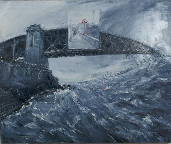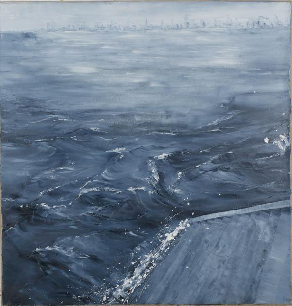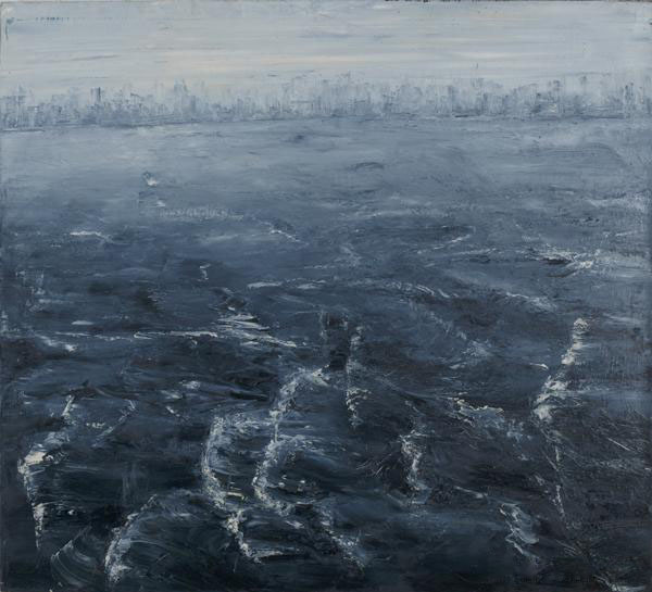 謝琦的繪畫題材和視覺表達有著強烈的被時代賦予矛盾性和非流行性,生存狀態(tài)和個人思考被提煉成為其視覺圖像的文化表征。一次偶然的視覺經(jīng)歷讓他開始表現(xiàn)“水”——大風讓陰沉天空下的湖水泛起波浪,這種特殊的視覺美和其中透出的神秘感觸動了他的內(nèi)心。事實上,這種看似偶然的契合是必然會來到的。水無形而多變,或如鏡,或如鱗,或浪濤洶涌,激蕩起伏,瞬息萬變;水能在清澈見底時安靜而純粹,也能在波浪滔天時強勢而張揚。正如世界的運轉(zhuǎn)與變化,溫潤的氣息與強大的力量并存。也正如人心潮一般,有沖動的宣泄,也有冷靜的思考。正是在這種感受和理解之上,他第一次感覺畫面表達與內(nèi)心情感能如此接近。即為“水文圖志”,《長江》系列無疑在謝琦的創(chuàng)作中占有重要的地位。一江水,一座城,一個人,這三者之間在漫長的時間中建立起了穩(wěn)固而微妙的關系,而這種關系被一張張畫面記錄了下來。 這是視點由外在向內(nèi)里轉(zhuǎn)變的過程,也是對生活不斷感悟的過程。正是由于這樣的變化,有形之水融匯于心,成為心中之“水”,于是也才有了后面新的作品面貌與思考。