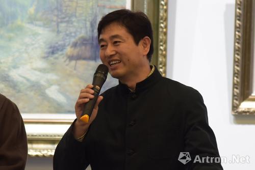 方圓美術(shù)館館長(zhǎng)賈新偉主持展覽開(kāi)幕式、介紹到場(chǎng)的領(lǐng)導(dǎo)嘉賓并介紹展覽初衷
