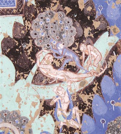 克孜爾石窟壁畫《獼猴王舍身救群猴》。