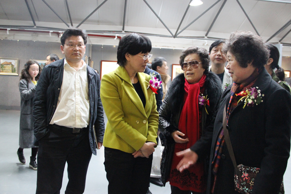 李述永部長、王開學(xué)副主席、璇風(fēng)會長等在畫展現(xiàn)場交流