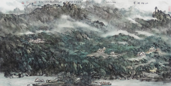 張善平主席國畫作品《山鄉(xiāng)曉霧》(名家典藏館藏)