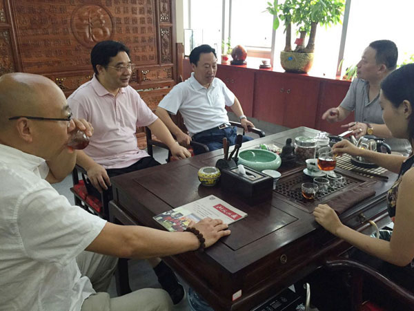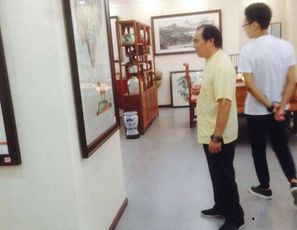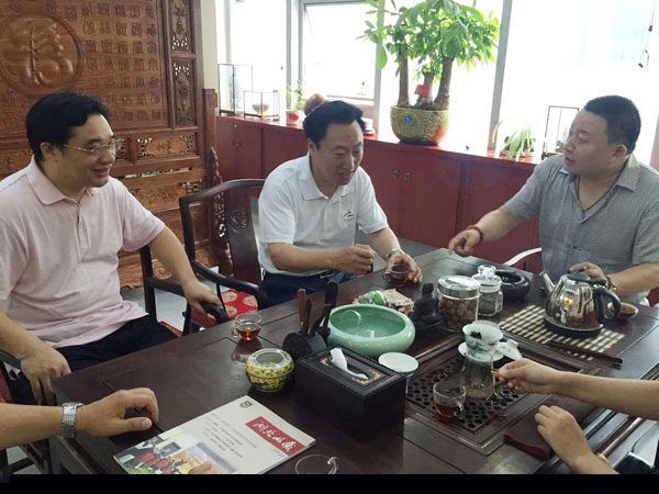期間參觀了館內(nèi)眾多名家書畫藏品、古玩藝術(shù)品,指導(dǎo)工作;并與名家典藏出品人郭建在館內(nèi)品茗小憩,在茶香寥寥間,愉快地交流藝術(shù)、經(jīng)濟、文化。