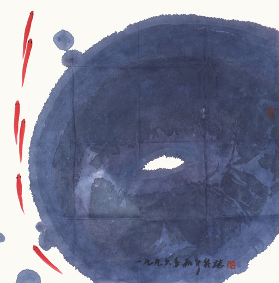 (拍品號(hào):062,周韶華 花鳥(niǎo) 魚(yú)樂(lè)圖 67cm*67cm)