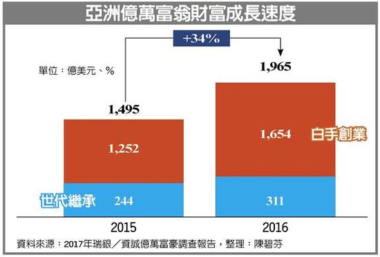 瑞銀指出,本次調查結果顯示亞洲共有637位億元富豪,人數(shù)首度超越美國,躍上全球之冠,其中的162位是新入榜,等同亞洲地區(qū)每兩天就有一位新億元富豪誕生。