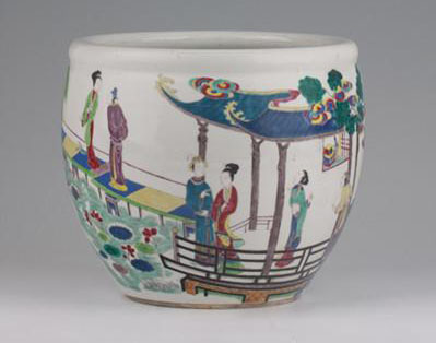 清康熙五彩人物畫缸 通高23厘米 直徑25.5厘米