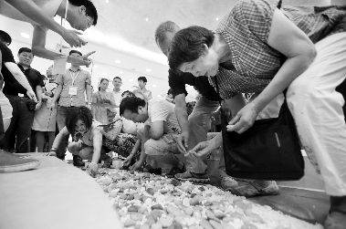 值得一提的是,因百來(lái)塊石頭中會(huì)藏有少量真貨,市民在采玉后可由專家現(xiàn)場(chǎng)鑒寶,如果是真品可免費(fèi)帶回家。