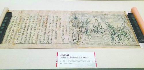 《趙城金藏》是國(guó)家圖書館“四大專藏”之一,是我國(guó)第一部木刻版漢文大藏經(jīng)《開(kāi)寶藏》的覆刻本。于金代熙宗皇統(tǒng)九年前至世宗大定十八年在山西解州天寧寺雕版刊刻,故名金藏,又因?yàn)?933年在山西省趙城縣廣勝寺發(fā)現(xiàn)而被稱為“趙城金藏”!囤w城金藏》的基本版式仿《開(kāi)寶藏》,部分經(jīng)卷尾部保留了《開(kāi)寶藏》題記,這在《開(kāi)寶藏》已經(jīng)散佚之后版本價(jià)值更顯珍貴。