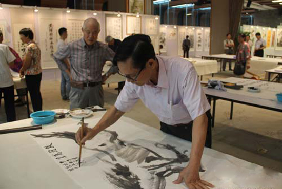 兩岸書畫家現(xiàn)場潑墨揮毫(中國臺灣網(wǎng) 吳曉寒 攝)