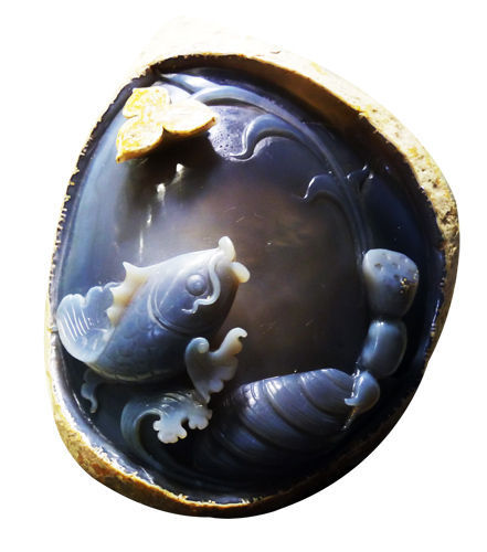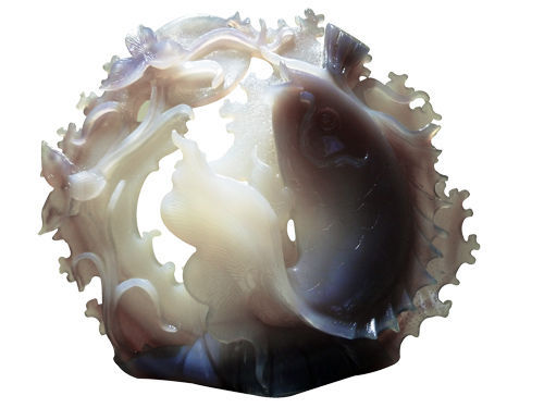 水膽瑪瑙雕件 鯉魚戲水