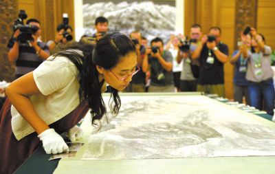 昨天上午,在國家博物館內(nèi),石丹正在認(rèn)真核驗(yàn)畫作。
