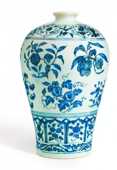 2010年,一件“清乾隆青花纏枝蓮紋花觚”在北京匡時(shí)五周年秋拍中,以6680萬(wàn)元落槌;2011年,香港蘇富比秋拍上,一件“明永樂(lè)青花如 意垂肩折枝花果紋梅瓶”成交價(jià)格再次突破億元大關(guān),達(dá)到1.6866億港元(約合1.3億元人民幣);去年,一件“明成化青花纏枝秋葵紋宮盌”又以 1.41億港元(約合1.1億元人民幣)成交。