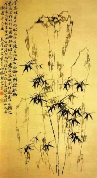 鄭板橋的書(shū)法熔黃庭堅(jiān)、蘇東坡于一爐,摻篆隸楷行諸體并雜以蘭竹筆畫(huà)入書(shū),大小參差,亂石鋪街,標(biāo)新立異,既有峻峭縱橫之雄,又有瀟灑秀麗之韻,人稱“六分半書(shū)”。清何紹基評(píng)板橋書(shū)“板橋字仿山谷,間以蘭竹意致,尤為別趣”。以繪畫(huà)筆法入書(shū),古亦有之,但像板橋出神入化者無(wú)二也。他的繪畫(huà)成就最高,尤擅畫(huà)竹石,細(xì)枝粗葉,瘦勁孤高,格調(diào)超人。所畫(huà)之蘭突出山間野氣,用筆秀逸,幽香撲人。