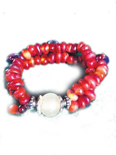 手串搭配并不是一件簡單的事,要綜合考慮珠子的質地、顏色等許多因素。張俊麗大學讀的是園林設計專業(yè),有一定的美學理論基礎,搭配起珠子也是得心應手:“首先,顏色不能花里胡哨、毫無章法,可以采用協(xié)調、對比、漸變、間隔、一枝獨秀等方法;同時,也要考慮客人的膚色、年齡、性別、氣質、服裝風格等;還要注意的是,有些珠子的材質放在一起容易磨損,應該盡量避免,或者用椰殼等作為隔片。”
