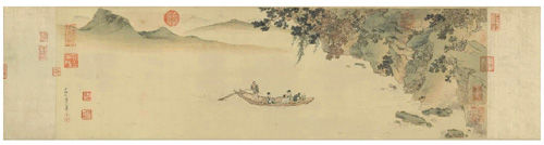 現(xiàn)藏于遼寧省博物館的《赤壁圖》繪制于1548年,為仇英的晚年力作,是按照北宋詞人蘇軾《赤壁賦》的原意,仿前人與同代人的《赤壁圖》所創(chuàng)作。