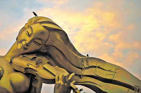 芙蓉廣場上,少女的頭發(fā)如瀏陽河水,發(fā)上的音符如在河水里流淌,吸引鳥兒駐足,讓人很容易想到瀏陽河和那首歌曲《瀏陽河》。