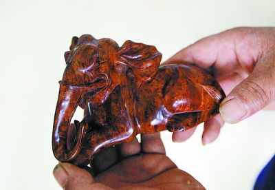 用麻梨疙瘩雕刻出來的作品有著天然的紋理