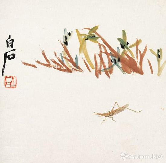花卉草蟲之《蘭草箭頭蝗圖》 齊白石