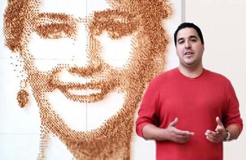 美國(guó)一名藝術(shù)家偏愛(ài)使用非同尋常的材料創(chuàng)作名人肖像畫,其最近一幅作品由近萬(wàn)顆花生制作而成,肖像主角為美國(guó)90后影后詹妮弗 勞倫斯(Jennifer Lawrence)。