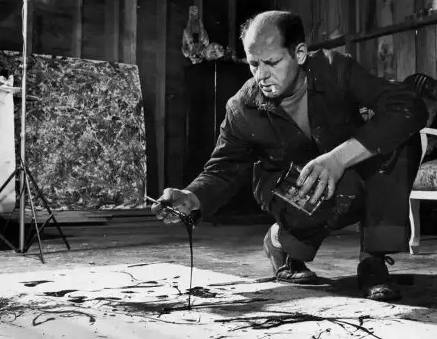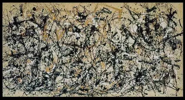 1947年波洛克開始使用“滴畫法”,把巨大的畫布平鋪于地面,用棒或畫筆把顏料滴濺在畫布上。其創(chuàng)作不作規(guī)劃,作畫沒有固定位置,喜歡在畫布四周隨意走動,以反復(fù)的無意識的動作畫成復(fù)雜難辨、線條錯亂的網(wǎng),人稱“行動繪畫”。此畫法構(gòu)圖設(shè)計(jì)沒有中心,結(jié)構(gòu)無法辨識,具有鮮明的抽象表現(xiàn)主義特征。