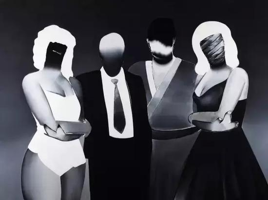 五木田智央的作品中,人物面孔經過了特別的修飾,利用紋理、模糊等遮蓋方法,使人很難辨識出人物的名字。人們只能通過人物的發(fā)型、體型以及個性裝飾物來辨別,就像瑪麗蓮·夢露那張,熟悉的人還是很容易認出來的。