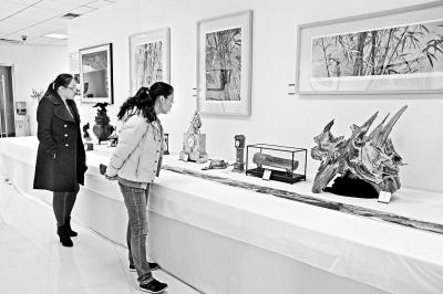 觀眾在欣賞上海國(guó)際藝術(shù)品交易中心首場(chǎng)拍賣會(huì)的拍品。CFP