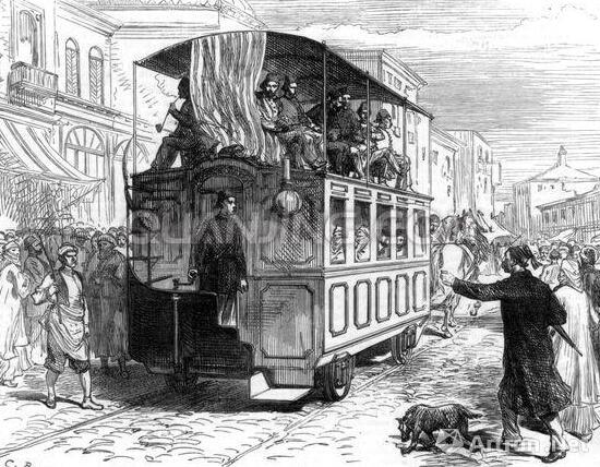 公共馬車在十九世紀末期出現(xiàn)于倫敦街頭。這是一種由幾匹馬共同拉動的大型廂式馬車,車廂里有一條過道,過道兩邊是成排的座位,可以同時乘坐二三十個人。公共馬車有司機,有售票員,有固定的停靠站,價格低廉,方便快捷,它是后來公交車的前身。在維多利亞時代,公共馬車叫作Ominibus,現(xiàn)在英語里管公交車叫Bus就是從這個詞演變過來的。這種馬車迅速大受歡迎,同時,華麗的裝飾和漂亮馬兒的搭配也成為歐洲皇室酷愛的身份象征。1831年,這種公共馬車被引入到紐約,運營數(shù)量在1835年超過100輛。費城、波士頓和巴爾的摩分別在1831年、1835年和1844年引入了類似服務。