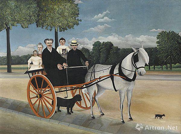 盧梭《年輕爸爸的馬車》 畫布,油彩 ;縱97厘米,橫129厘米;作于 1908 年;藏于法國巴黎橘園博物館