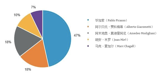 例如,畢加索以6.5億美元(約合42.7億元人民幣)拍賣成交總額成為2015年現(xiàn)代藝術(shù)家榜單冠軍。而根據(jù)artnet的數(shù)據(jù),這個(gè)總額背后有超過2800件作品成交。