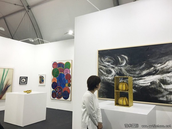 主要代理日本藝術(shù)家的白石畫廊(Whitestone Gallery)也辟出一半的展位給具體派藝術(shù)家,以回應(yīng)外界對(duì)這個(gè)特殊的藝術(shù)運(yùn)動(dòng)不斷上升的關(guān)注度,他們帶來了白發(fā)一雄(Kazuo Shiraga)、田中敦子、前川強(qiáng)(Tsuyoshi Maekawa)等人的作品。另外一半展位留給了一系列知名藝術(shù)家,如草間彌生和豬熊克芳(Katsuyoshi Inokuma)等,當(dāng)然年輕藝術(shù)家也必然是標(biāo)配。白石畫廊雖未曾透露售出多少件作品,但明確表示對(duì)于銷售業(yè)績十分滿意,不過現(xiàn)場一幅2米見方的奈良美智(Yoshitomo Nara)標(biāo)志性大頭娃娃作品并未售出,大概因?yàn)?00萬美金的價(jià)格對(duì)于藏家來說并沒有太大的誘惑!