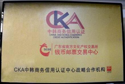 2015年12月21日,中韓商務信用認證合作簽約及授牌儀式在廣州舉行,南方文交所以及旗下的南方文交所錢幣郵票交易中心被授予“CKA中韓商務信用認證中心戰(zhàn)略合作機構”的認證資格。