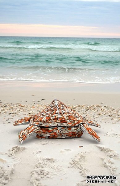 近日,美女藝術(shù)家Shelly Marshall用1200根煙蒂創(chuàng)作了一個海龜?shù)哪P,之所以決定創(chuàng)作一個足夠吸引眼球的雕塑,主要是想讓人們關(guān)注海灘污染問題。