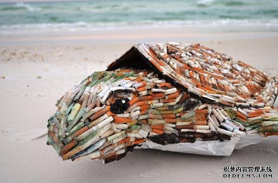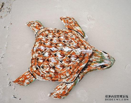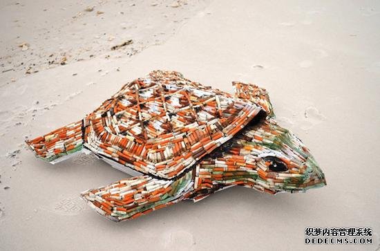 藝術(shù)家撿了1200根煙頭:結(jié)果送出海龜模型