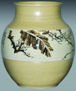 婺窯釉下褐彩梅花尊 陳新華,號(hào)華泥居士,1955年出生于浙江金華。高級(jí)工藝美術(shù)師、中國陶瓷設(shè)計(jì)藝術(shù)大師、浙江省工藝美術(shù)大師、浙江省非物質(zhì)文化遺產(chǎn)婺州窯傳統(tǒng)燒造技藝代表性傳承人、浙江青瓷中青年十大名師、浙江省青瓷行業(yè)協(xié)會(huì)副會(huì)長、金華婺州窯陶瓷研究...
