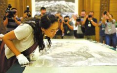 昨天上午,在國(guó)家博物館內(nèi),石丹正在認(rèn)真核驗(yàn)畫(huà)作。 畫(huà)作驗(yàn)明為真當(dāng)場(chǎng)捐贈(zèng)國(guó)博 昨天9時(shí)30分,在國(guó)家博物館一展廳內(nèi),一幅畫(huà)作的封條一一啟封,尺寸為245cm108.5cm的《山區(qū)修梯田》被工作人員緩緩呈現(xiàn)在展臺(tái)上。其創(chuàng)作于1958年,記錄了大躍進(jìn)時(shí)期陜南鎮(zhèn)巴山區(qū)...