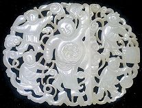 筆者藏有一件清代乾隆工白玉五子登科紋飾帶扣,這一寶物外形別致,精巧美觀。該帶扣用優(yōu)質(zhì)白玉精雕細(xì)琢而成,致密清潤,柔滑細(xì)膩,潔白純凈。帶扣分為子扣和母扣,形狀扁圓,通體透雕,圖案布局合理,主題寓意簡潔。帶扣內(nèi)以中心登科之子為核心,其余四子對...